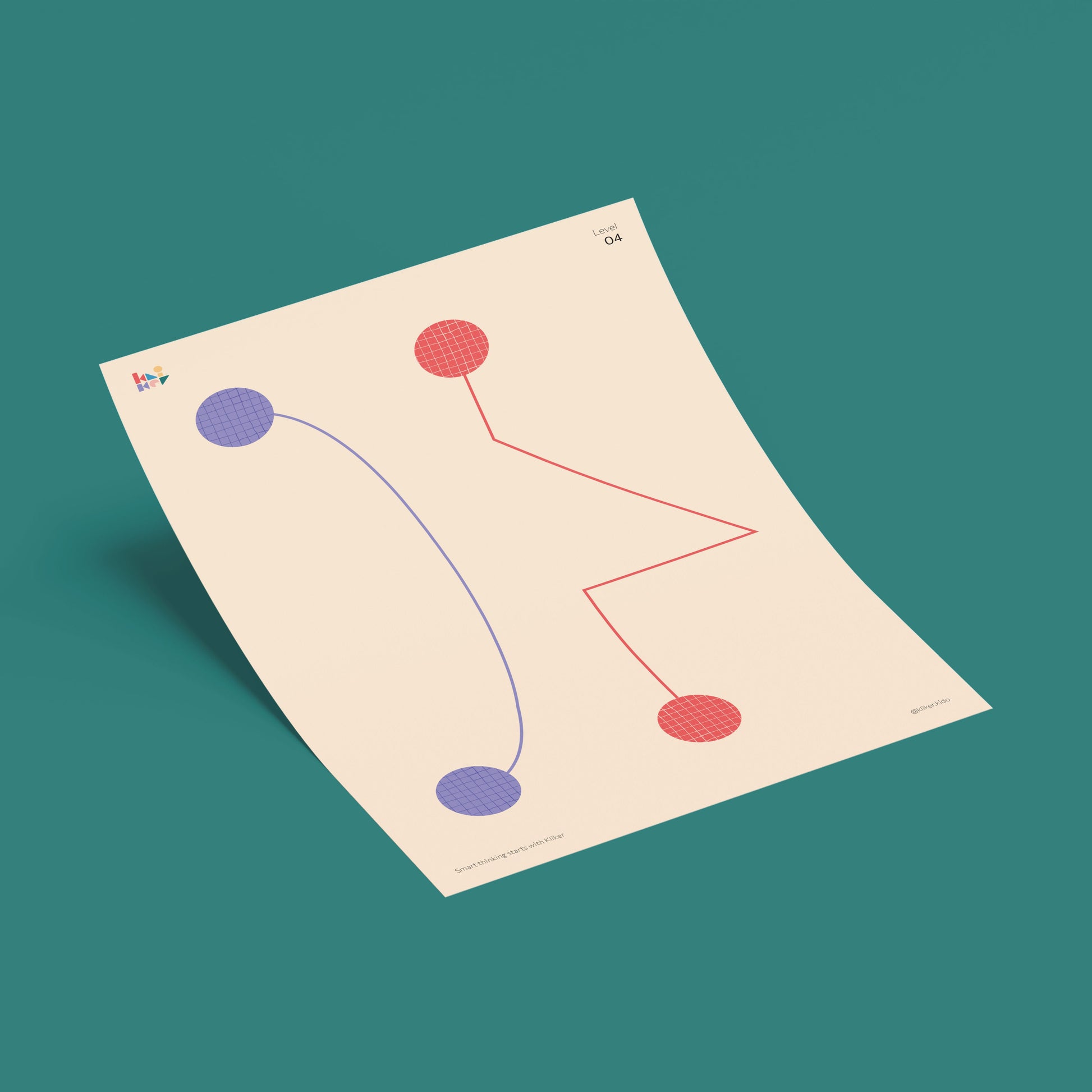Each A4 sheet shows two paths: one for the left hand, one for the right. Children follow them with both index fingers, slowly, carefully, and with full concentration. It’s like a dance for the brain, guided by fingers. Level 4 set has 10 different games.